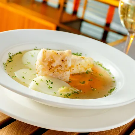 A sunbathing terrace and an outdoor pool are provided at a charge.